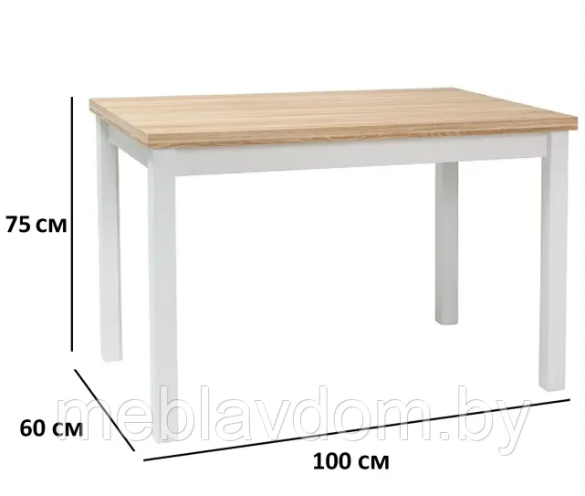 Столешница стола обеденного изготавливается из ДСП, МДФ. Цветовое исполнение: белый матовый, Дуб сонома/белый матовый.